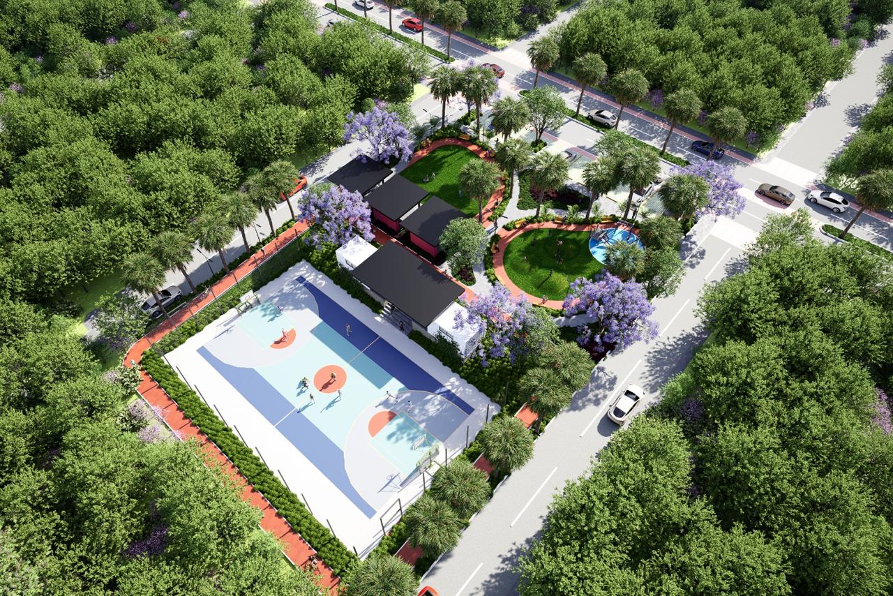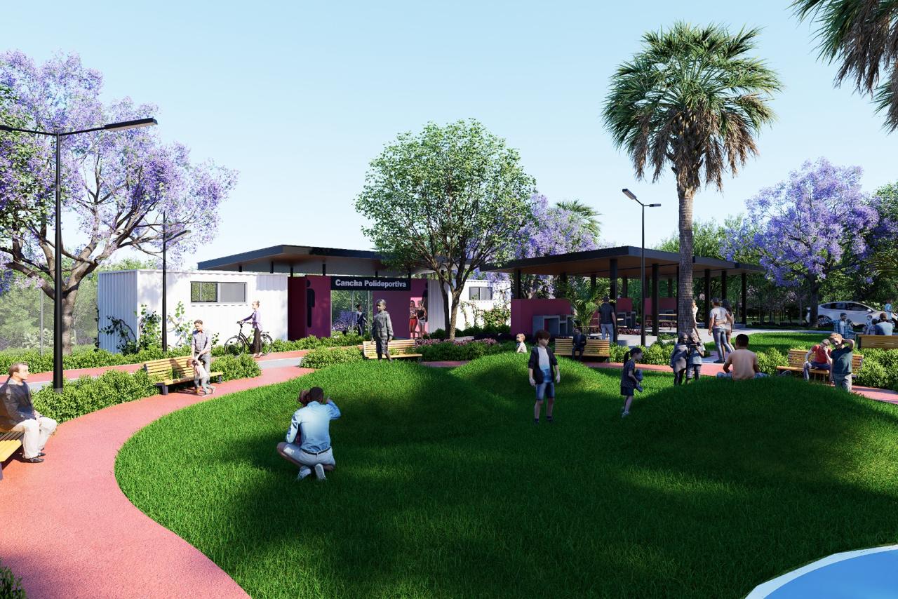 Canchas, espacios verdes y salones comunales.